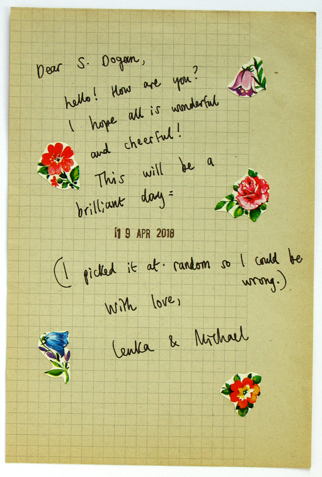 The art work consists solely of the discussion between the recipients about what on Earth these letters are, who sent them and why, etc.